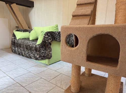 Wir haben zwei klar getrennte Bereiche für Hunde und Katzen. So entsteht eine ruhige Umgebung, die den Bedürfnissen beider Tiere gerecht wird, ohne sich gegenseitig zu stören.